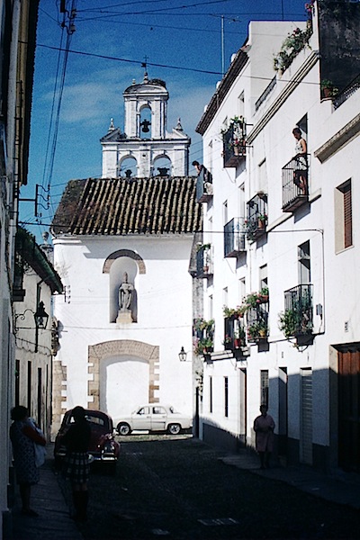 Many of the Cordoba streets, like many old towns in Spain, were not designed for the motorcar. They were developed in the days of the donkey and cart. The following photograph shows one of the many back streets not suitable for cars. If a driver ends up in a street like this there is a chance he could get stuck and have to back out.