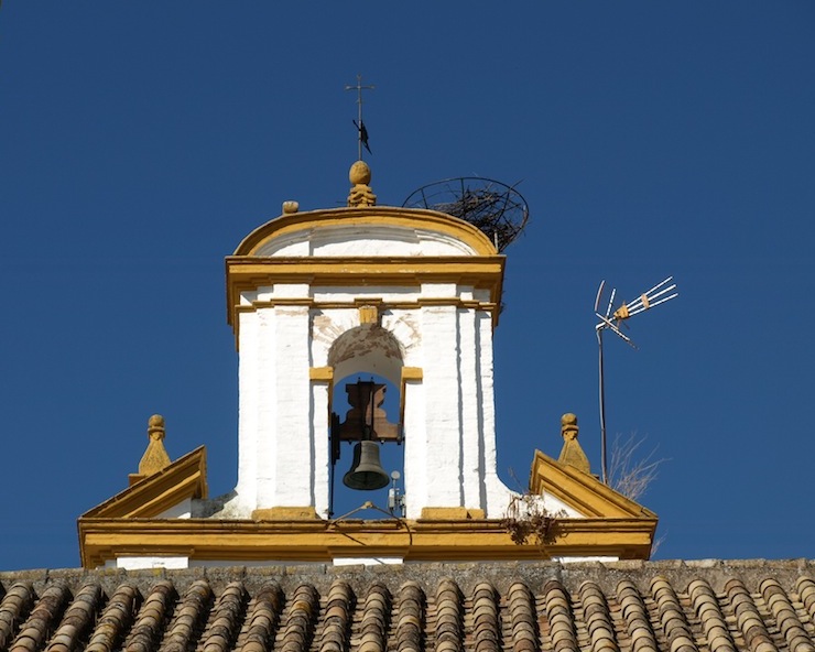 A 2015 image of the belltower. The only changes are the stork nest, which has a metal frame support, and a TV antenna.