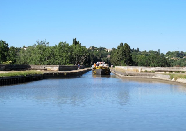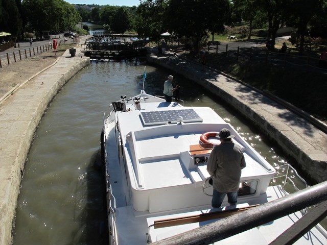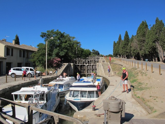 Traversing the locks near Beziers. Note the curved lock sides, which I think assists with directing boats to the actual lock gate and curves make for a stronger structure.