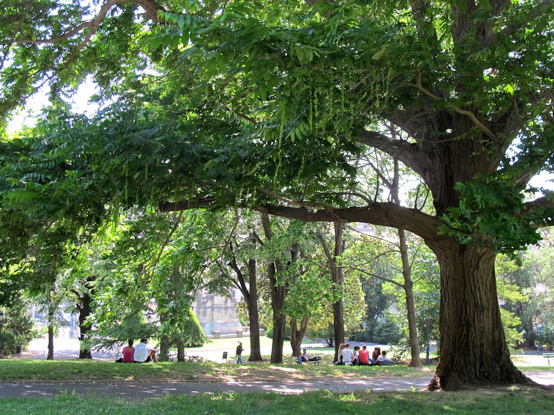 The path through Poets Park. The park takes its name from the busts of poets that mark one of the pathways.