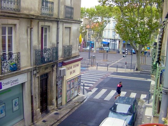 View into Beziers main plaza from the balcony Hotel Confort. Image credit: unknown author from Trip Adviser. Image in maps and drawings folder desk top
