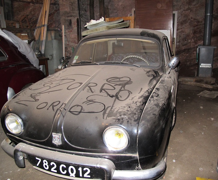 I have come to believe that Zorro is a car enthusiast as his signature often appears on old dusty cars. This car is a Renault Frigate.