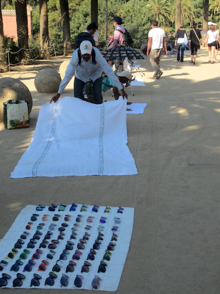 One of Muhamed’s compatriots laying out his wares after the police have gone.