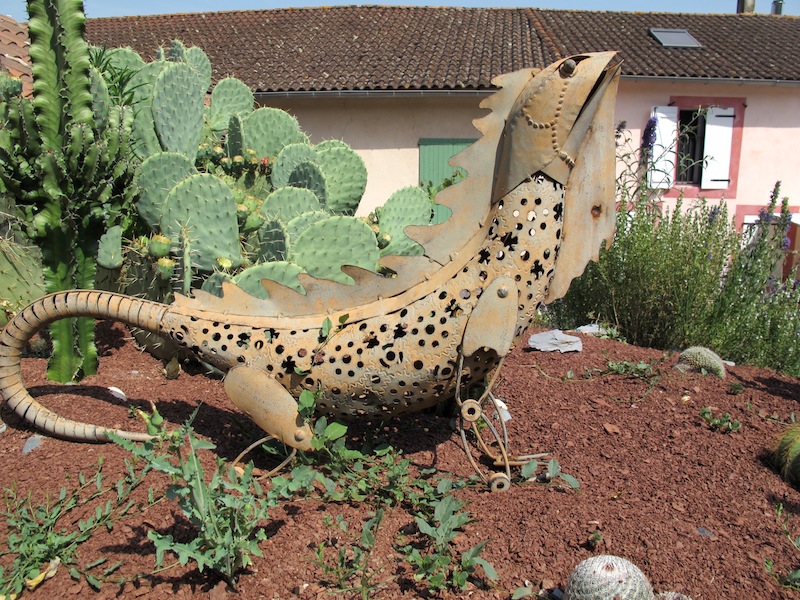 A hybrid bearded dragon/frill necked lizard in the garden.