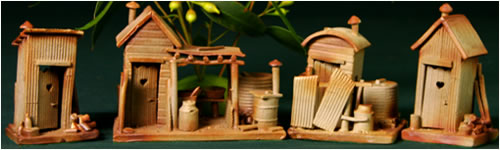 An array of bush dunnies. It was the detail such as milk cans, rainwater tanks, bottles and wood piles that fascinated the buyers.