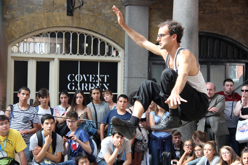 Tightrope walking busker. There is a certain similarity between the tightrope walker and the osprey; both have their primary wing feathers spread. (Canon 600D).