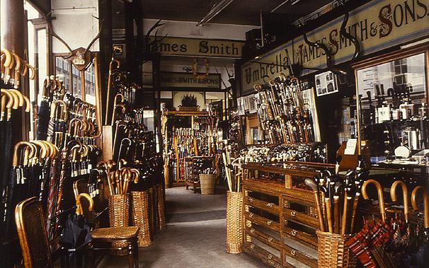 Interior view of the world famous James Smith and Sons umbrella shop. The business was founded in 1830 and is still a family run business.