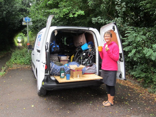 Our kitchen and the first morning tea on the road. The van was a Peugeot Partner.