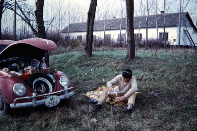 During our 1972/3 winter grand tour of Europe and the Middle East sleeping each night in our VW Beetle and or tent was a toughening up and bonding experience for us both. Some nights it was so cold that condensation from our breath froze the interior of the car and when we woke in the morning it was not unlike waking up in a freezer and some nights were so cold that the car tyres froze to the ground.