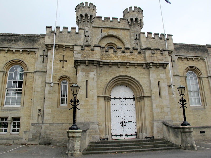 One of the fearsome but grand entrances to HM Prison Oxford.