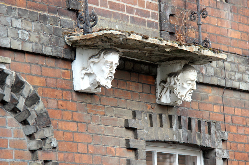 Decorative corbels on the eccentric building.