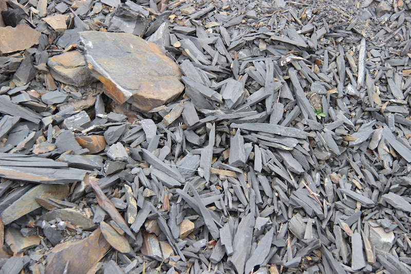 Slate shards at the base of the road cutting. Road cuttings are to me an open page in a book of geology.