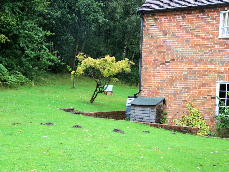 The cottage wall (2015) where we found Allison asleep in the stinging nettles. At the time the manicured lawn was a wild garden.