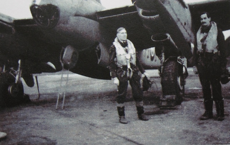 John (right) with Flight Officer Dickie Clarkson in front of a de Havilland Mosquito.