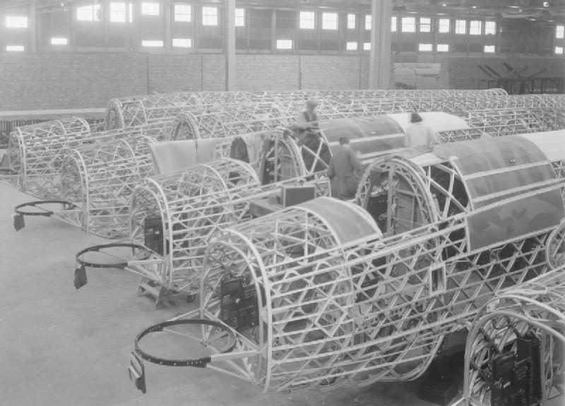 Vickers Wellingtons under construction during WW2. Image credit: British Government photograph. Via Wikipedia.