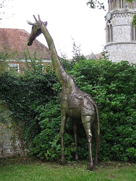 A Welford Park garden sculpture looking over the fence into the grounds of the Church of Welford