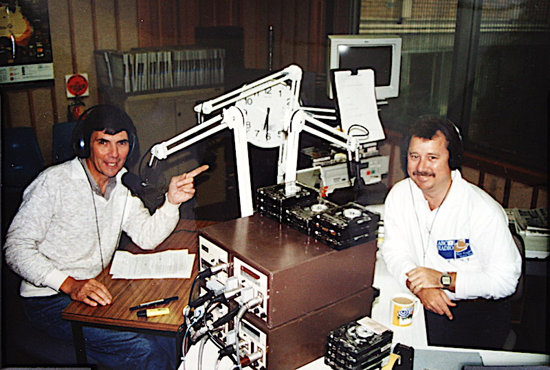 Presenting my early Saturday morning program with anchorman Graham Nuttall in the Tamworth ABC studio.