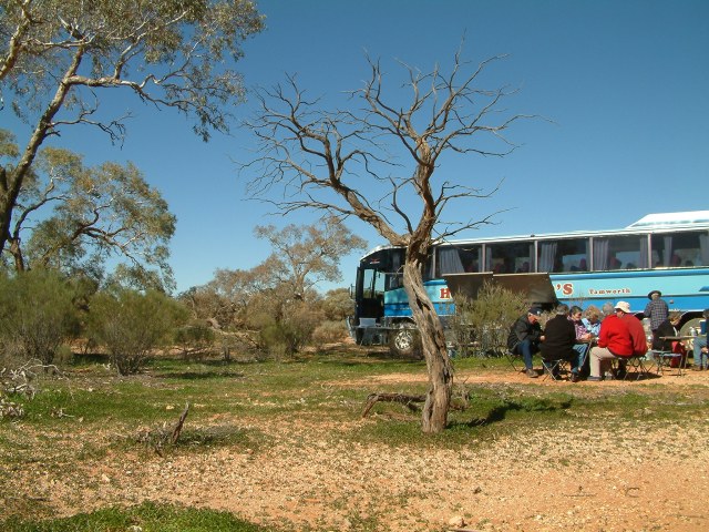 The principal of the company (Trevor Hannaford) from whom we chartered the coach and driver was most accommodating and supportive of our endeavours, encouraging us from the start. There was one driver who drove for us on most of the tours. Alan (Tappie) was also very accommodating and he had a favorable rapport with our clients. Tappie never seemed to tire, even after the most arduous day. An arduous day might involve ploughing through bull dust, being bogged or repairing a hole in the engine sump.