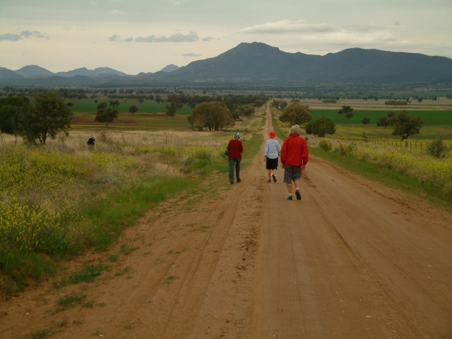 Walking to the mountains. The mountains in the distance are part of the inactive Warrumbungle volcano, NSW