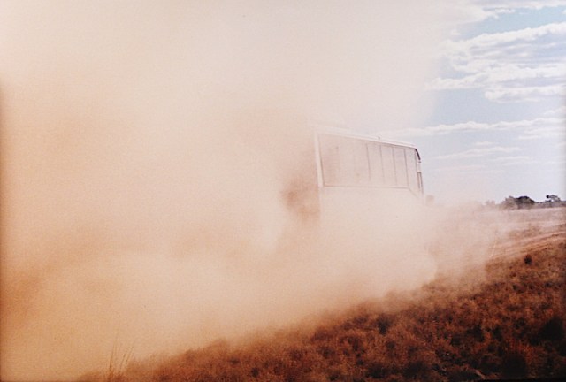 Bulldust is extremely fine, formed when road dust particles are subject to repeated drying and wetting. The dust penetrates every nook and cranny of a vehicle and sometimes when a vehicle plunges into a bulldust hole the vehicle is totally enveloped by the dust, hiding it completely and making it difficult for the driver to see the road ahead. Fortunately the coach we took into the outback had pressurized storage bins and therefore passenger luggage and food supplies remained dust free.