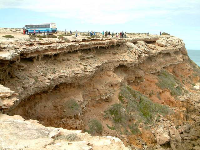 The Great Australian Bight is technically part of the Indian Ocean and lies on the southern edge of the Nullabor Plain. Cliffs along the coast are sixty metres high in some places.