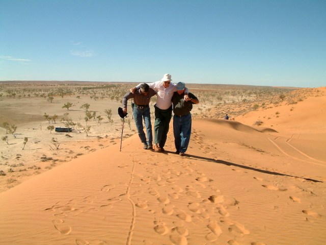 To the west of Birdsville town is Big Red, said to be the highest sandhill in the Simpson Desert. For many of our clients the whole point of going on the Birdsville tour was to climb Big Red, and even physically challenged clients set their minds to attempting it. The following photograph shows Paul, one of our regular clients, taking up the challenge.