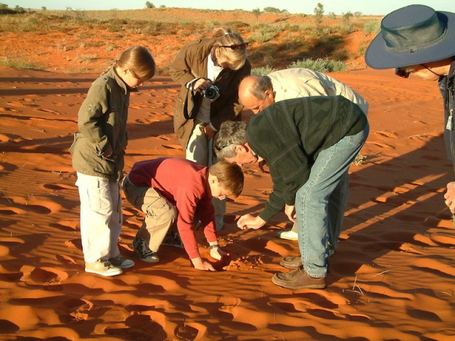 Trying to entrap an ant lion in the desert sands. Parents and grandparents brought their children and grandchildren along on our tours.