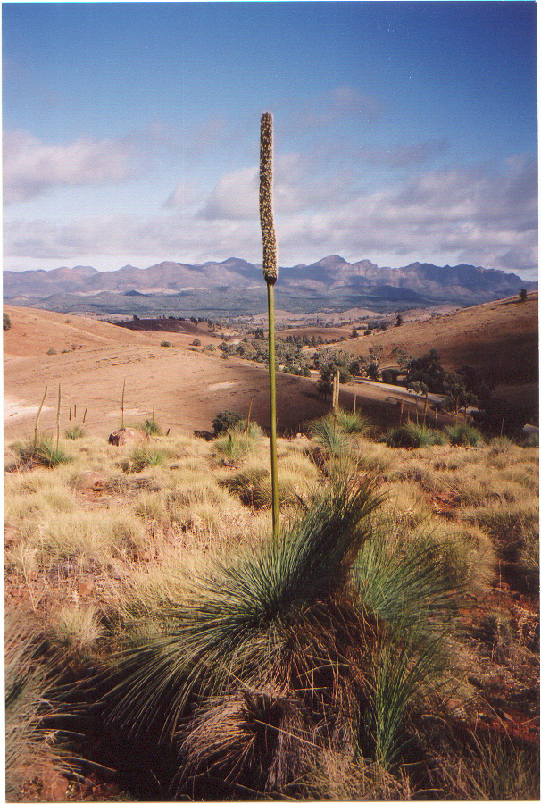A Grass tree (Xanthorrhoea) overlooking the Flinders Ranges South Australia.