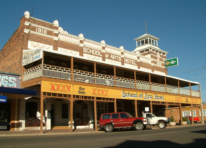 School of Arts Hotel Roma western Queensland. At the time the School of Arts Hotel was built it boasted 44 bedrooms on the top floor.