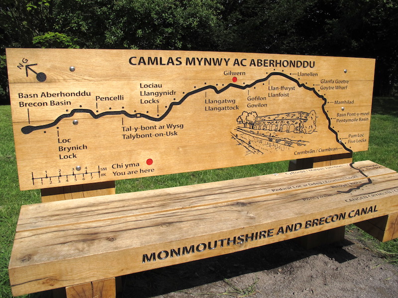 The not so portable map showing the extent of the Monmouthshire and Brecon Canal. Our rides from Gilwern took us east and west along the canal.