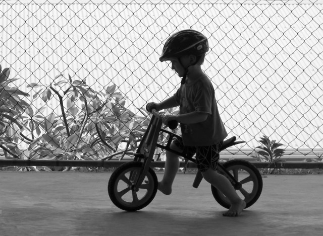 The walking/running machine was called the Dandy Horse because it was ridden mostly by well-dressed young men known as dandies. The Dandy Horse is still being made. The following is a photograph of one of my grandsons riding a modern version.