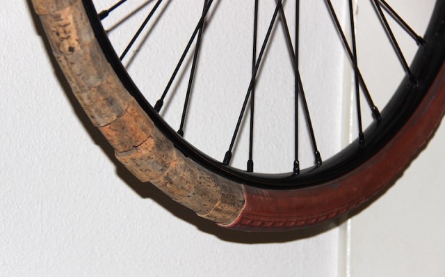 Cork inner of a bicycle tyre. On display in the Nationales Velo museum, Switzerland
