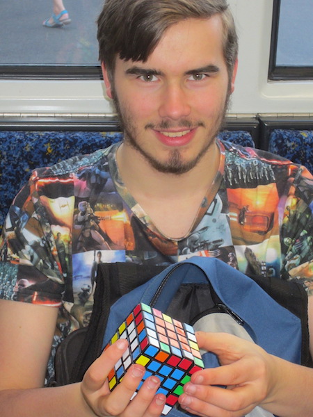 Hats off to Reuben. I could do the 3×3 cube in the early ’80s in less than a minute but a few years ago got a 4×4 and realised that my time for Rubik’s cubes had probably come and gone. I gave it to a neighbour’s son who expressed an interest. At the Eumundi (QLD) markets we watched a young magician solve one one-handed and blind. BUt there was (of course) a trick to that! I wonder if you know it?