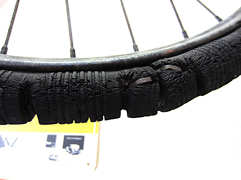 An older version of the Tannus. Note the metal staple holding the tyre joint together. On display in the Velo Museum.