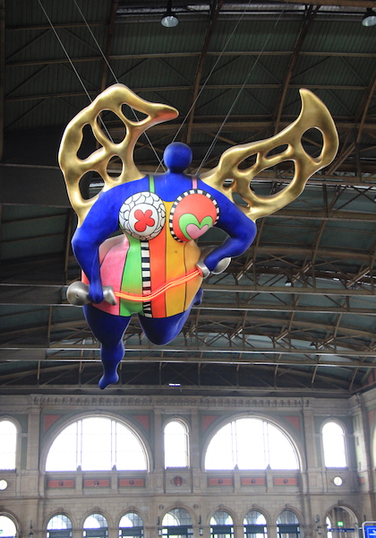 The Guardian Angel by Niki de Saint Phalle (1930-2002) hanging in the large hall of Zurich railway station.