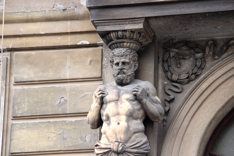 Ajax doing his best to support a decaying building in Pula. Note the blistering stucco, the rot has set in, however Ajax will no doubt withstand the ravages of time.