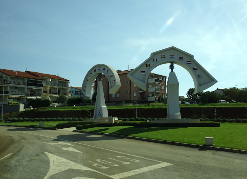 A piece of what I consider kitsch sculpture. Taken from the bus on the way to Pula. No disrespect intended.