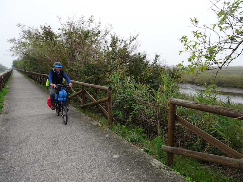 The concrete bike path heading for Grado.