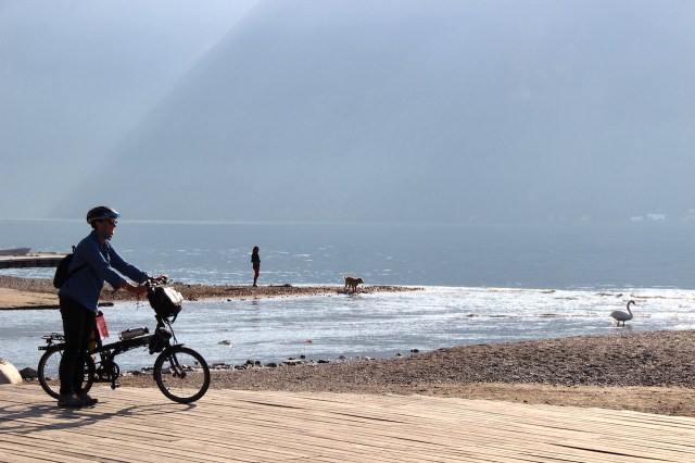 There is a scenic path around a big proportion of the lake, great for riding and walking. The footpath from Lugano to the village of Gandria, the Sentiero di Gandria (Gandria Trail), is benched out of the cliff face and some way along the path the bike riding came to an abrupt halt and from then on it was walking only. The following images show the ride/walk.
