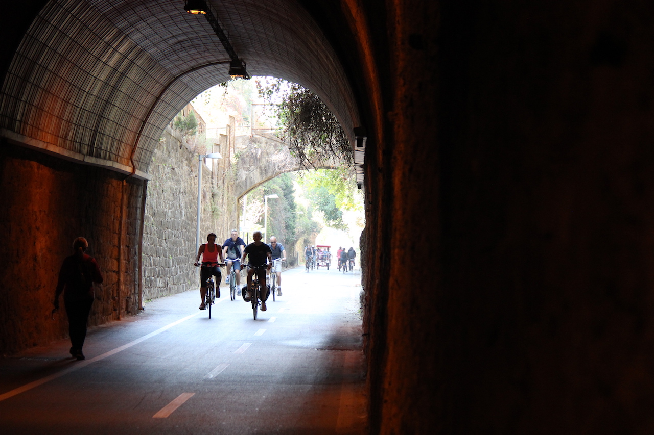 Sunday riders out for a spin about to enter one of a number of disused railway tunnels.