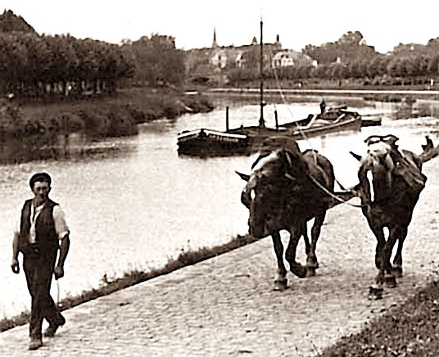 Two horses pulling a barge on Finowkanal in the late 1800s. Image credit: In the public domain via Wiki Commons.