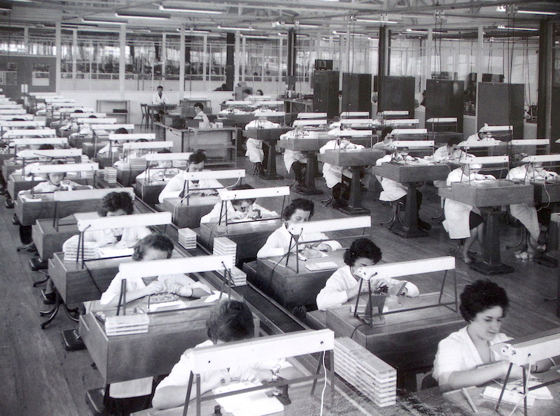 Watch assembly line in 1960. Image credit: Musee du Temps, Besançon. Service promotion and enterprise.