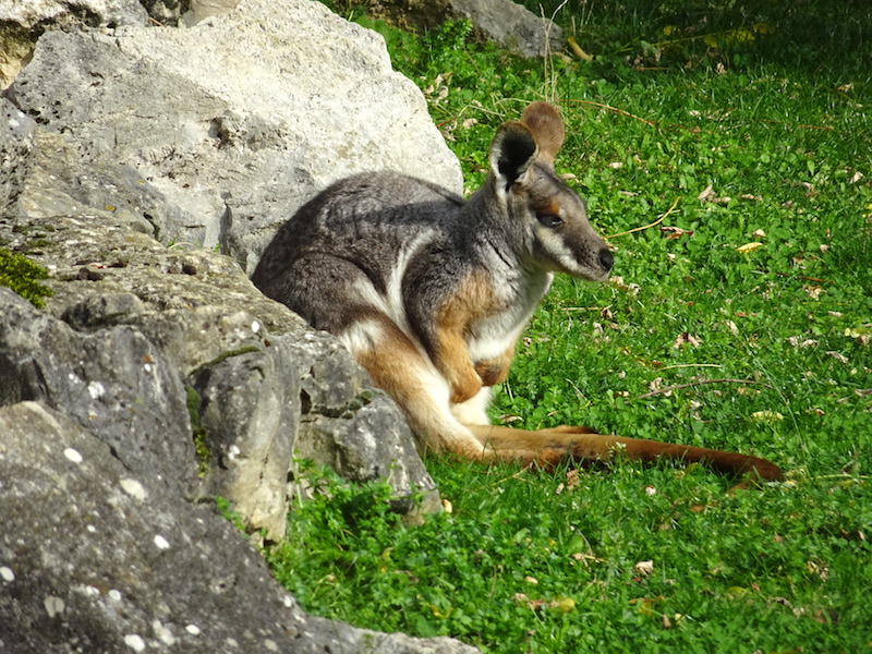 yellow-footed rock wallaby backed up into a rock crevice to keep warm in the citadel zoo.