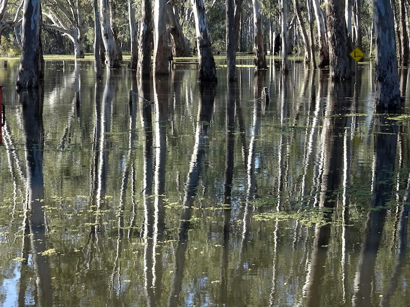 River red gums grow along the rivers and creeks in the Murray Darling river system. The ones above would normally be on dry land.
