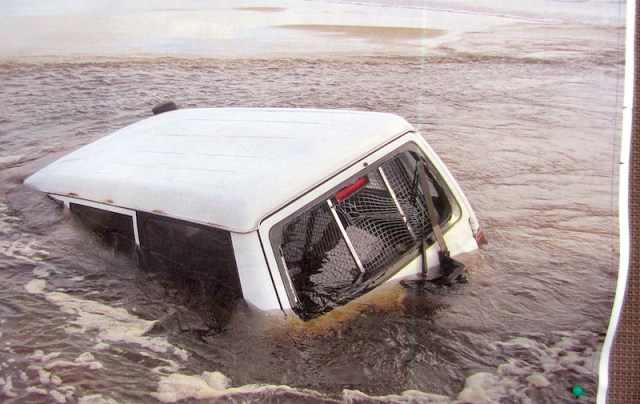Overwhelmed by the incoming tide. Image credit: Photo by T & A Atkins. On wall at N.P. Arthur River Office.