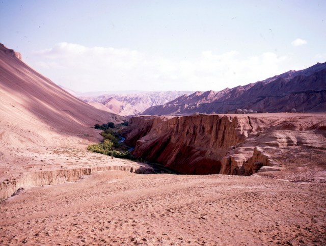 Yurts high up in the Mountains of the Moon near Turpan. The original photograph was a 6 x 4.5 colour transparency.