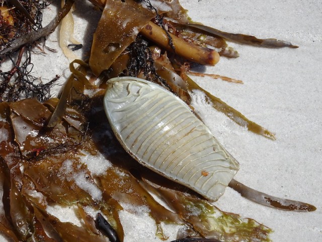 While walking along the beach and kelp collecting there were a myriad of things washed ashore but one particular object that took our fancy was the egg case from a draughtboard shark.