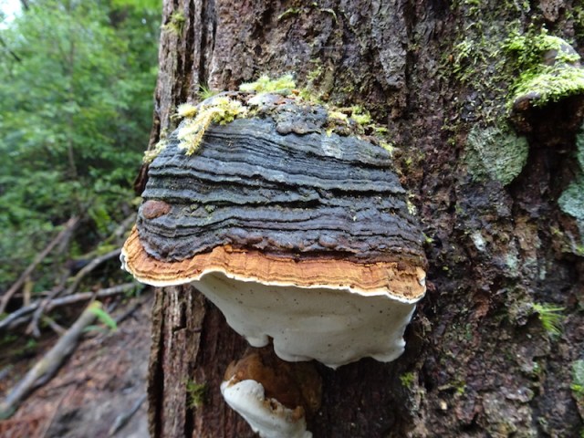 Bracket fungi are of the polypore genus Phellinus. They are hard and appear inert and it’s hard to imagine they would have any uses but they did, Aborigines used them for medicinal purposes. The smoke from burning fruit bodies was inhaled to cure sore throats and scrapings from charred fruit bodies when mixed with water were drunk to treat coughs, fevers and diarrhoea. Unfortunately there is some uncertainty as to which species was used so the reader should not go on a bracket fungi binge to cure any of the listed ailments.
