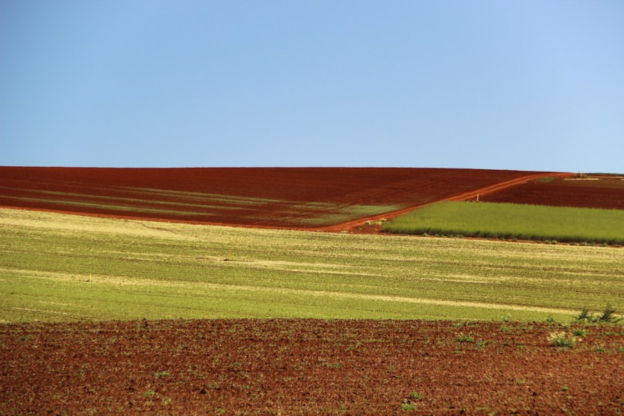 Rolling hills of northern Tasmania. This photograph has not been enhanced; the colours are exactly as they appear.