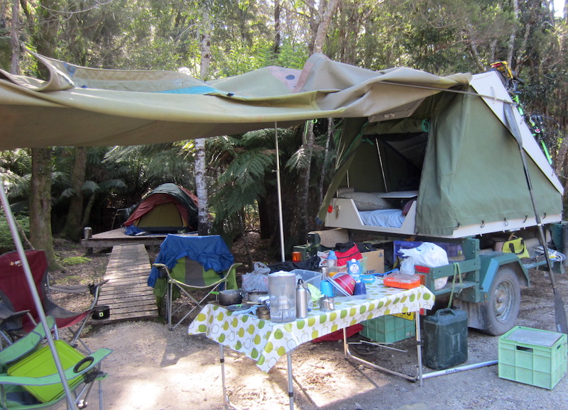Our Corinna camp. Note the wooden platform with tent.